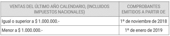 Asimismo, aquellos sujetos que deban facturar en forma electrónica en el momento de entrega de los bienes o prestación de servicio, en el domicilio del cliente o en un domicilio distinto al del emisor del comprobante, deberán tener en cuenta el siguiente cronograma, respecto de la obligatoriedad:
